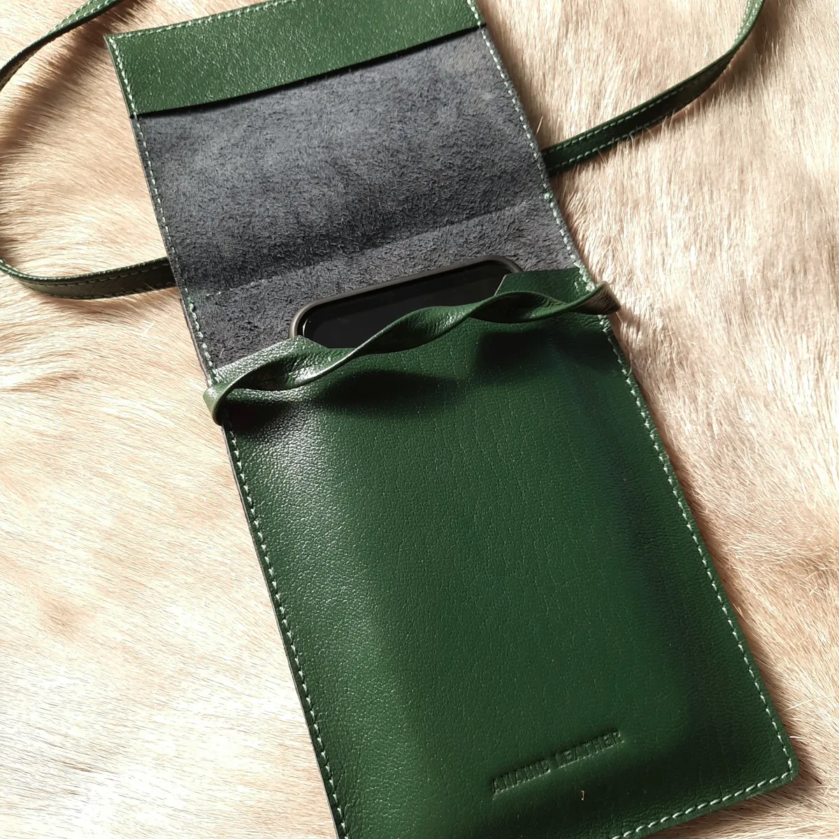 کیف روشی ساخته شده از چرم طبیعی درجه ۱ و دارای حداقل یک جای کارت و مناسب انواع گوشی های موبایل.